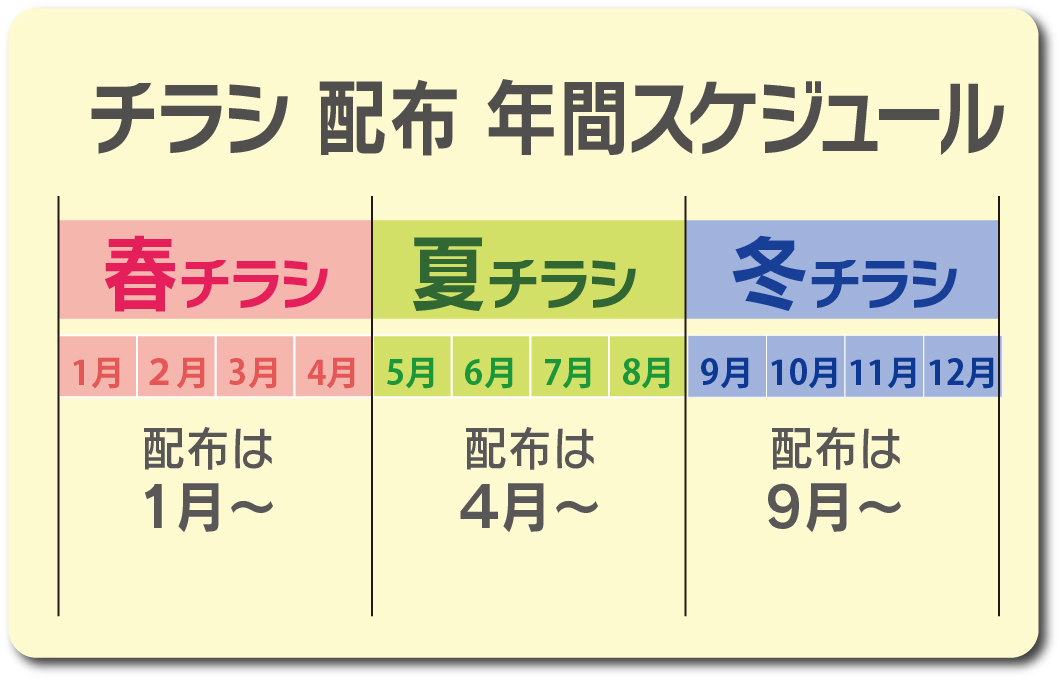 年間3回 (1・4・9月)チラシのご予約開始をFAXにてお知らせいたします。