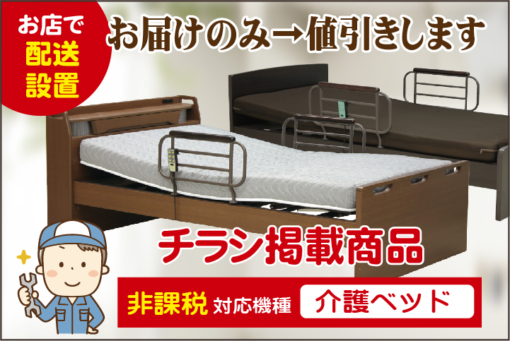 介護ベッドが売れています!配送と設置を販売店さまで行う場合はお値引きさせていただきます。※最新チラシに継続掲載商品です。